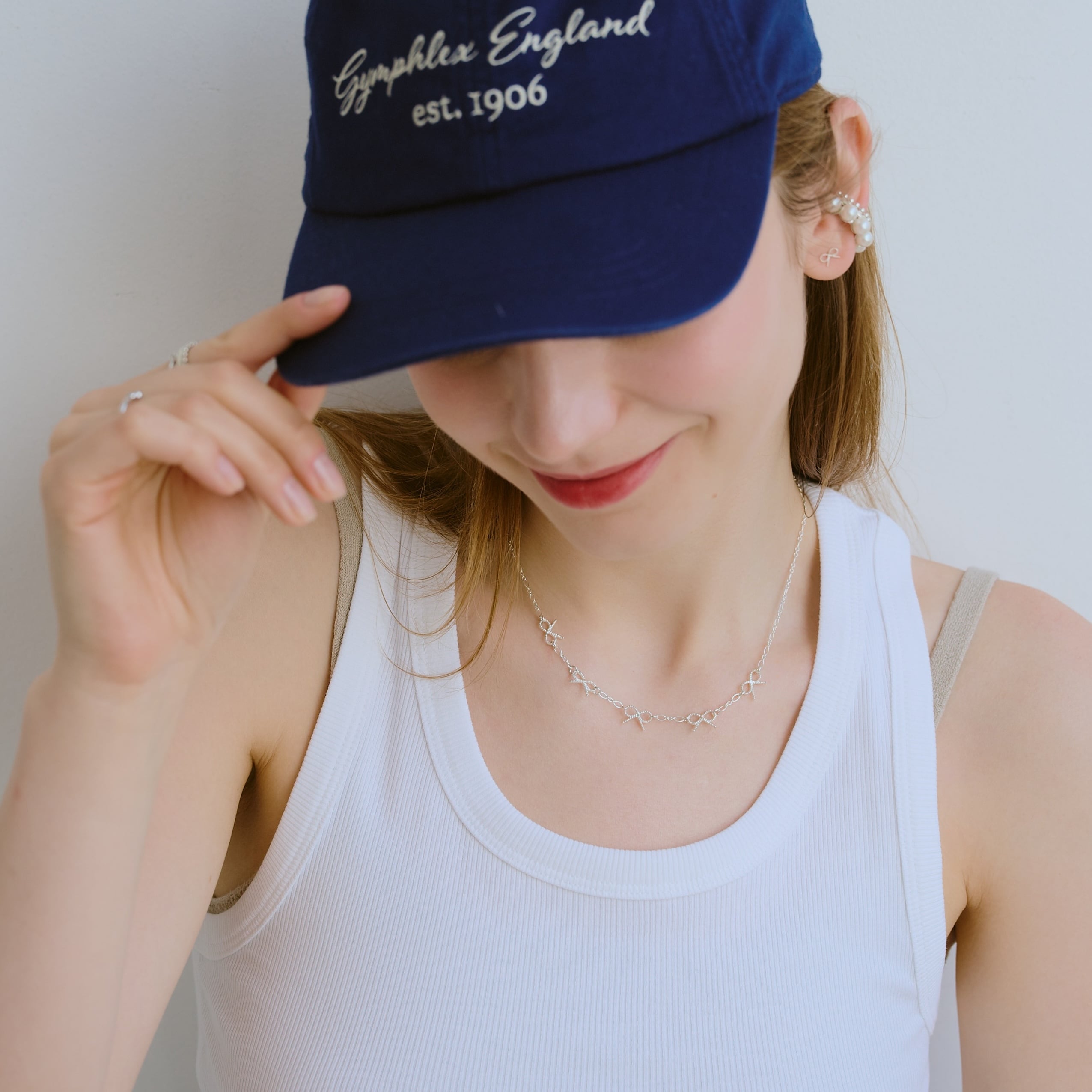 小さなリボンモチーフがさりげなく並ぶ、繊細なネックレス。