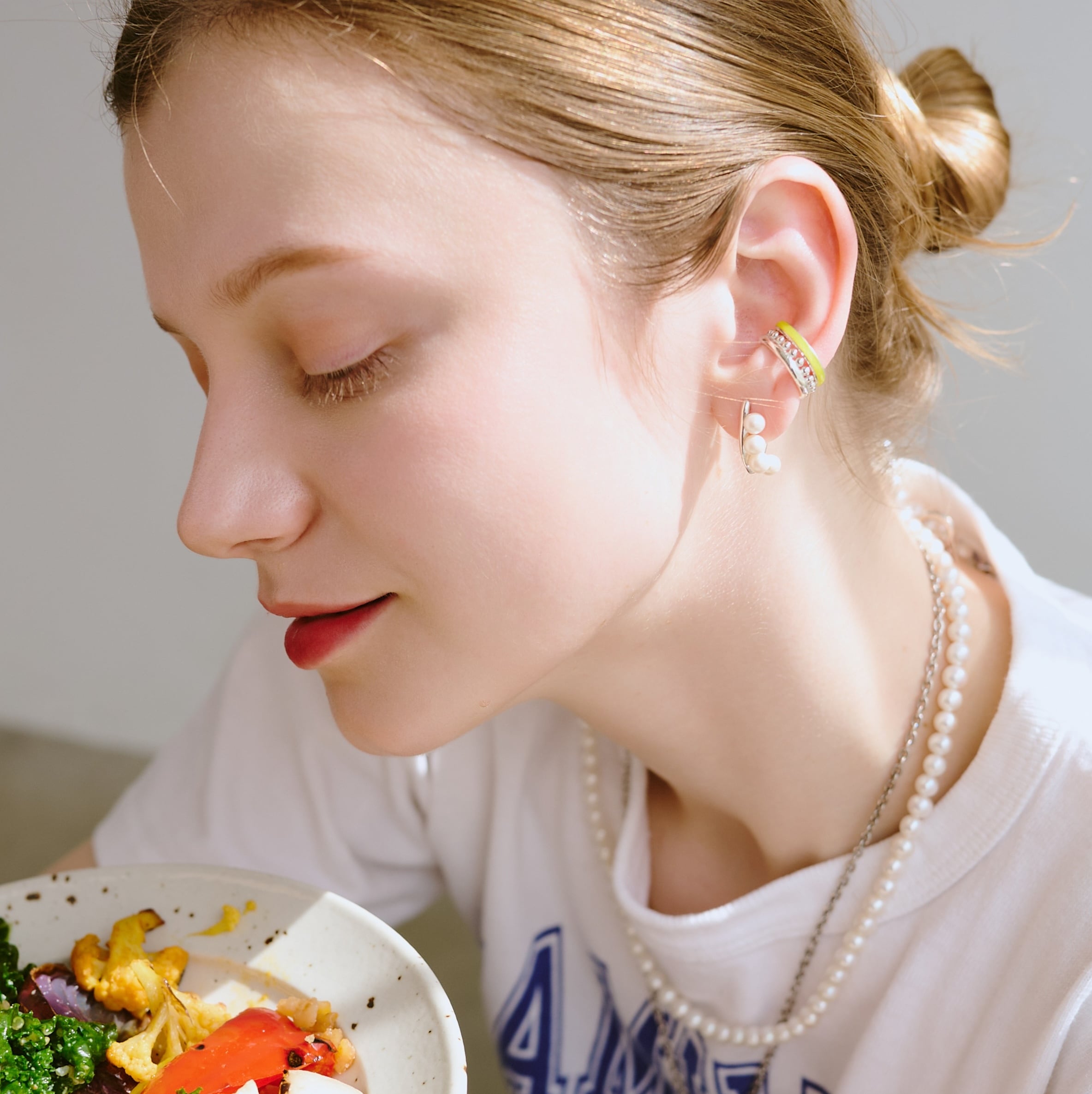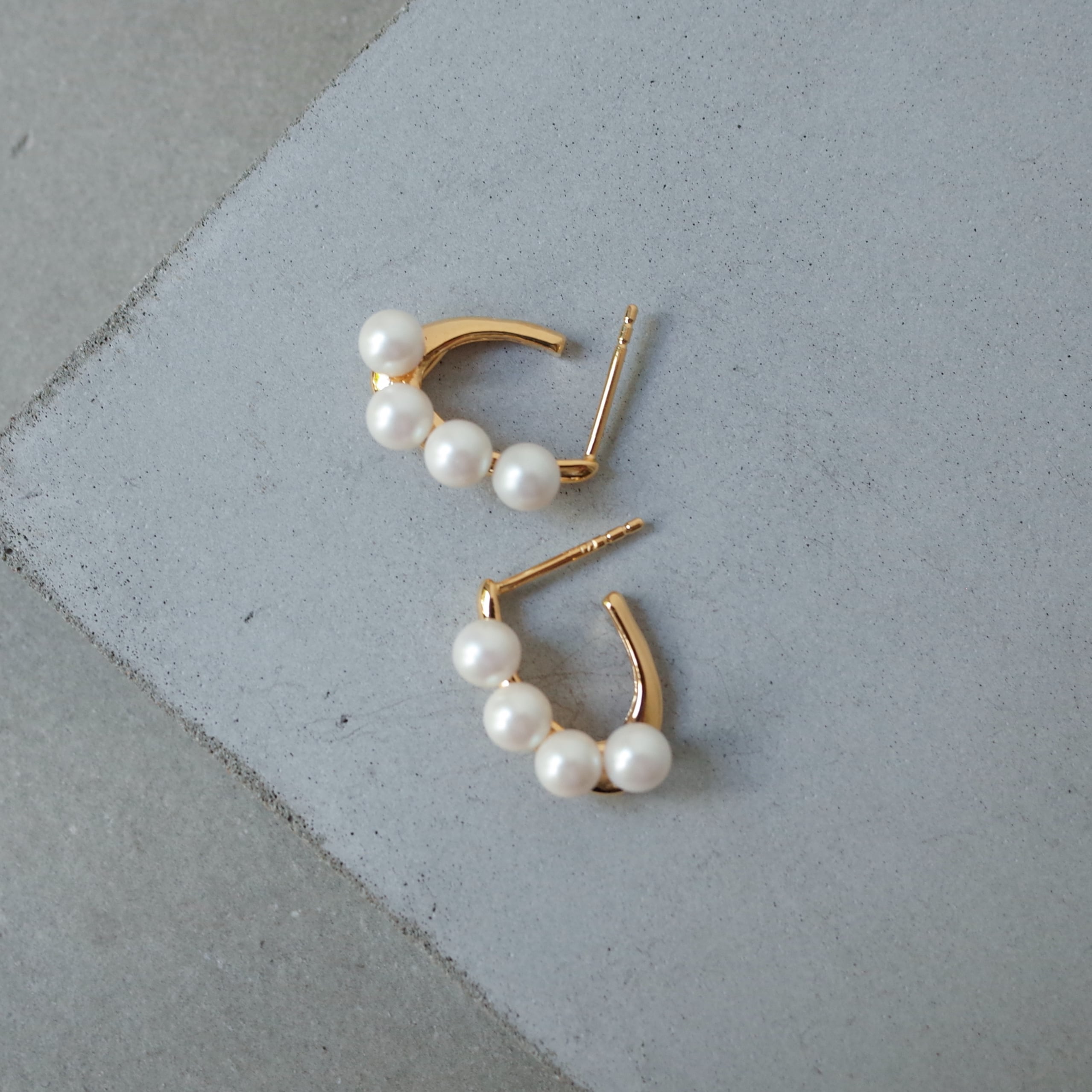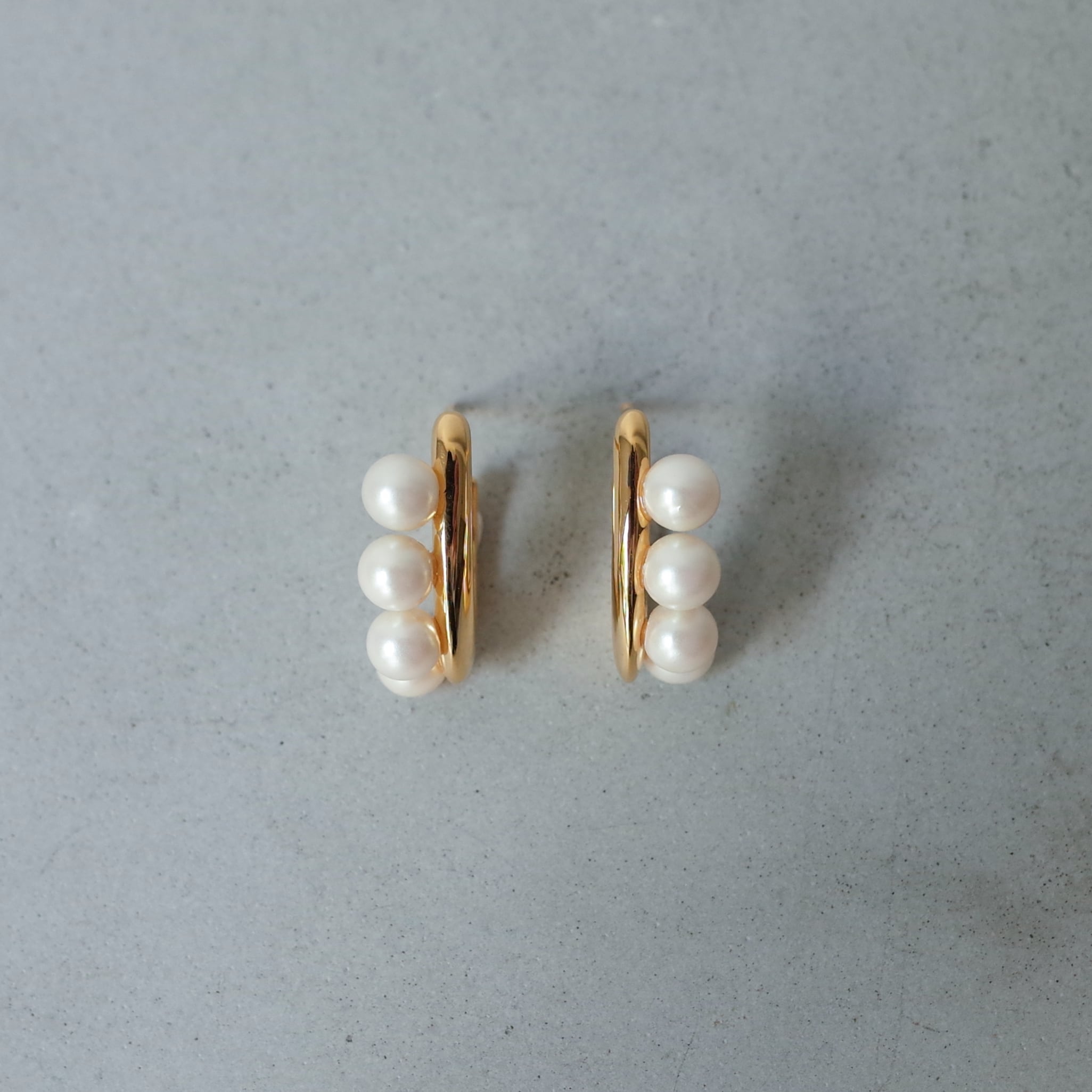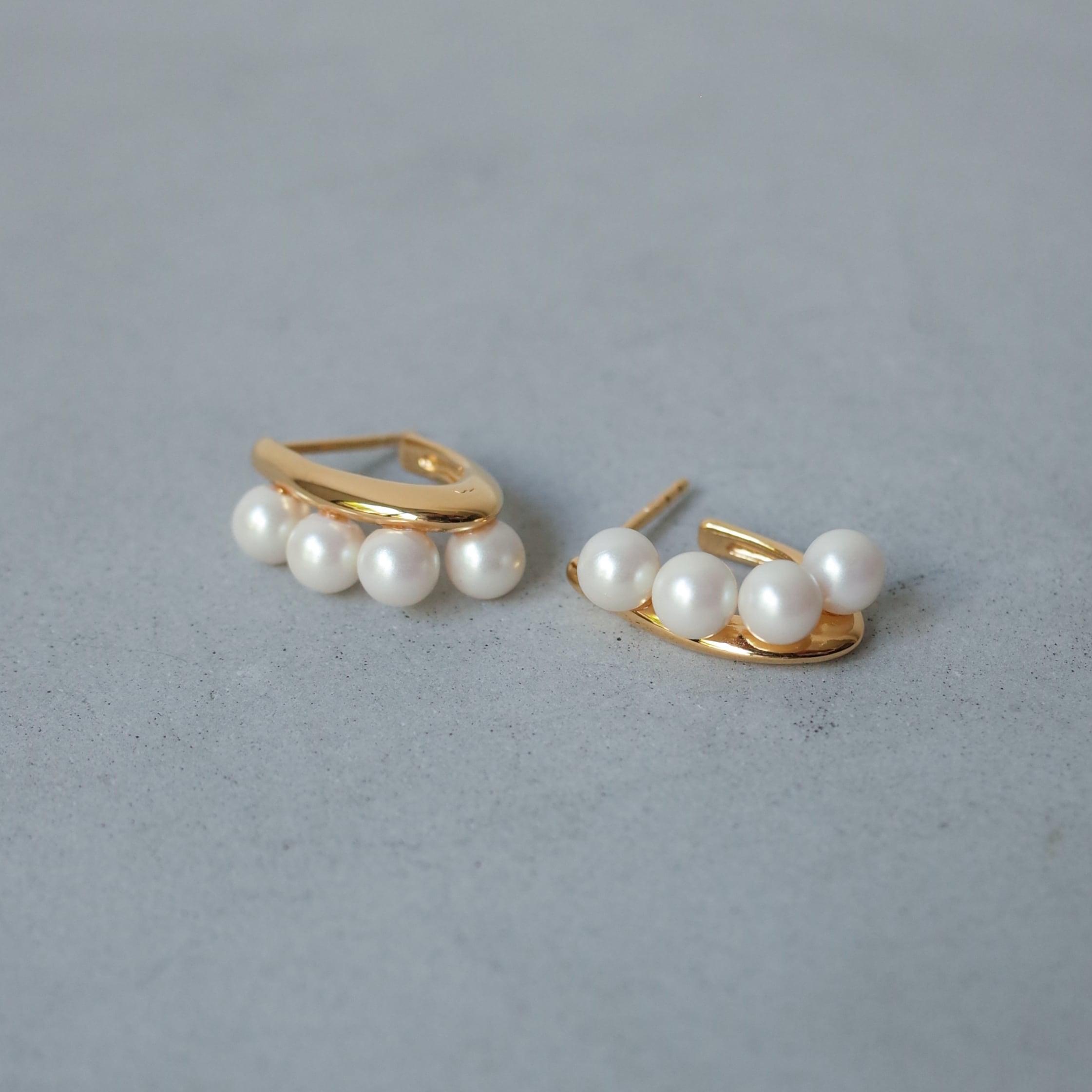 上品なパールの存在感に、モダンなフォルムを掛け合わせたデザインが印象的です。